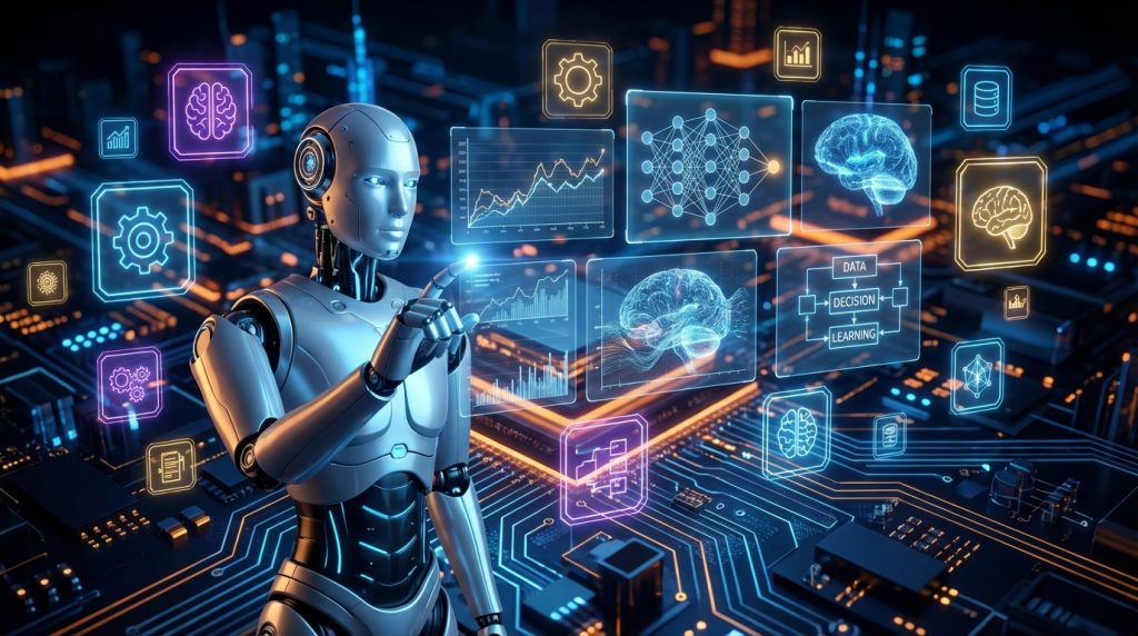 - Decision Making: Based on its perception and internal model, the agent evaluates available actions and selects the one that best serves its objectives.